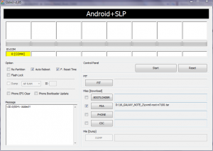 - 4. Startet jetzt am PC Odin3 und fügt unter “pda” die Datei cwm6-root-n7100.tar hinzu